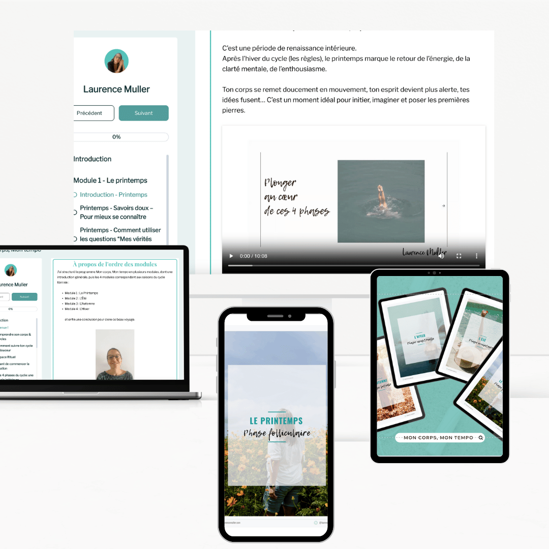 L’accès a la formation est illimité : tu peux la consulter à tout moment, aussi souvent que tu le souhaites, sans limite dans le temps. Cela te permet de revenir dessus à ton rythme, quand tu en as besoin, pour t’accompagner dans ta découverte et ta reconnexion à ton corps.